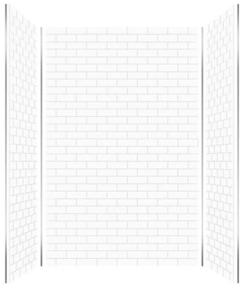 The Pioneer system offers a classic, affordable option with a glossy subway tile design. It includes durable panels with color throughout and brushed aluminum trim for a clean, timeless look.